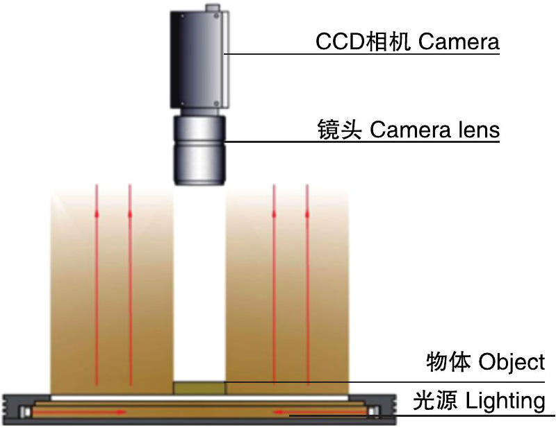 The CCD camera is placed on the top and captures the characteristics of the measured object under the flat light.
