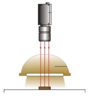 The CCD captures the characteristics of the measured object through the hole in the dome.