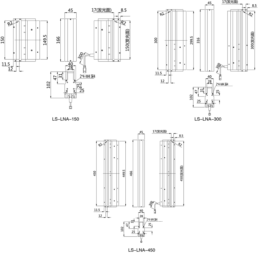 The special cylindrical lens and coaxial structure of the LNA series light source gather the diffused light and then irradiate the linear light on the coaxial line with the camera. It is suitable for large printing inspection and large size positioning.