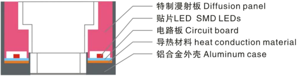 Sectional view of a square light