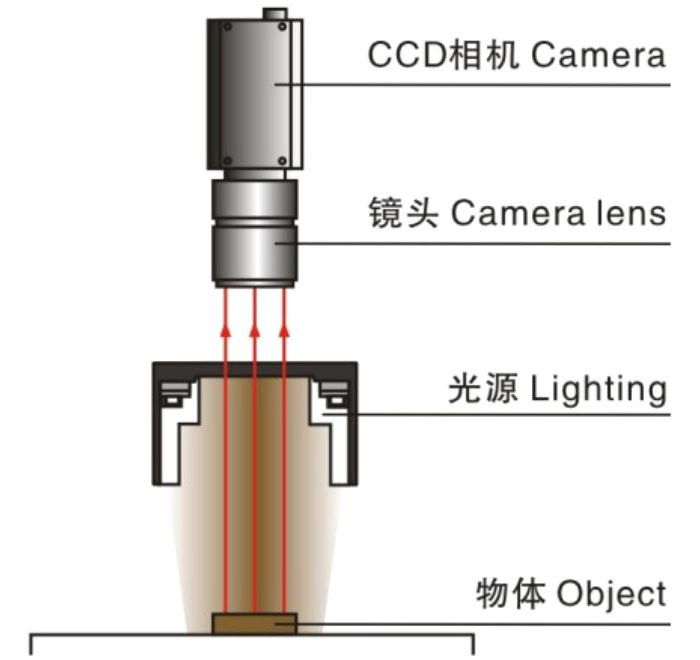 The CCD camera is placed above the camera hole of the light to capture the characteristics of the object0